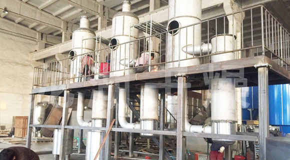 單效或多效降膜蒸發(fā)器,適用于牛奶、葡萄糖、淀粉、木糖、制藥、化工、生物工程、環(huán)保工程、廢液回收等行業(yè)進行低溫連續(xù)式蒸發(fā)濃縮,具有傳熱效率高,物料受熱時間短等主要特點,所以特別適用于熱敏性、粘滯性、發(fā)泡性等物料。